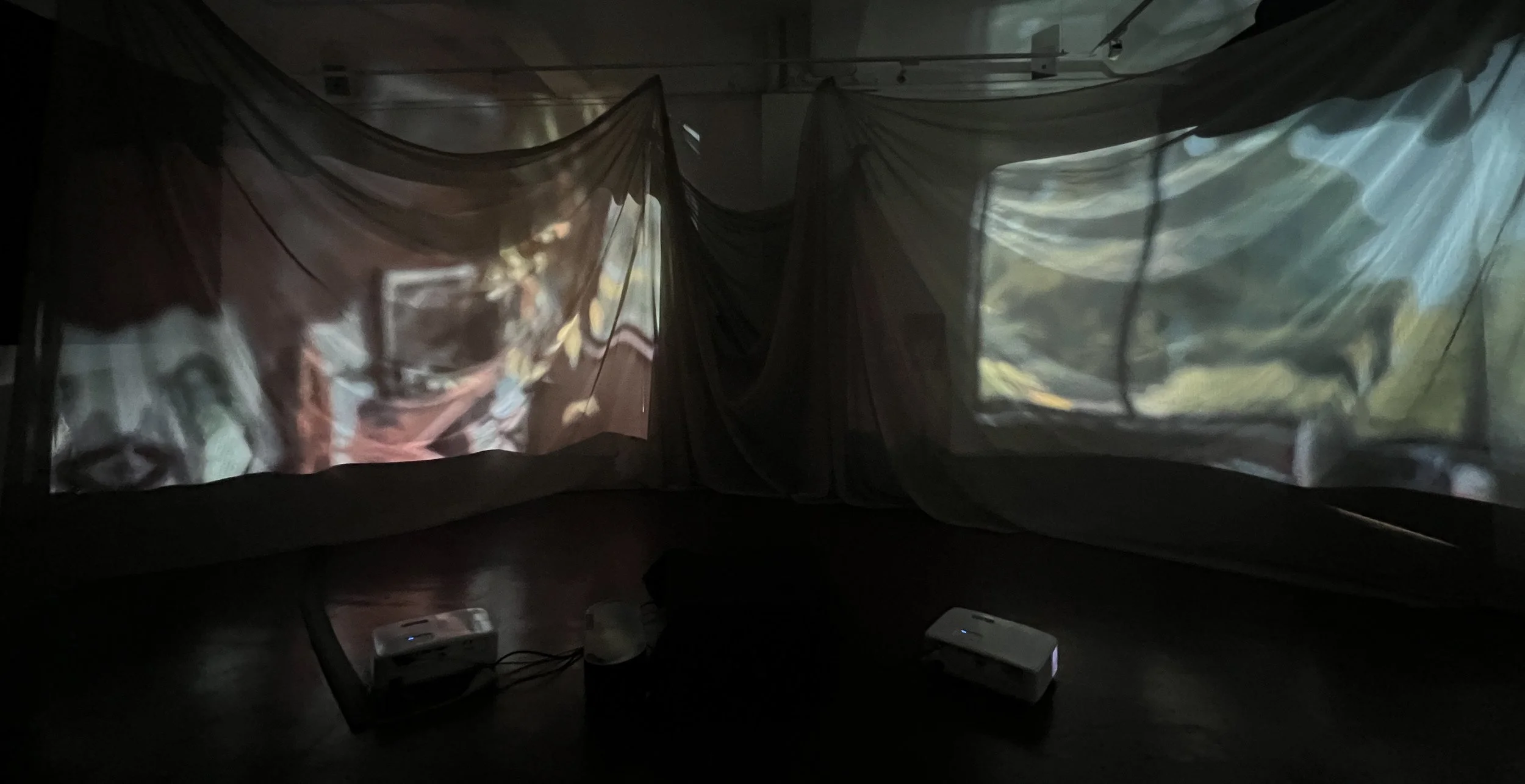 This multi-channel work rematerialises the relentless turbulence of VM through projection onto draped cloth, emphasising the ever-changing interior tumult on an unsteady and unpredictable architecture.